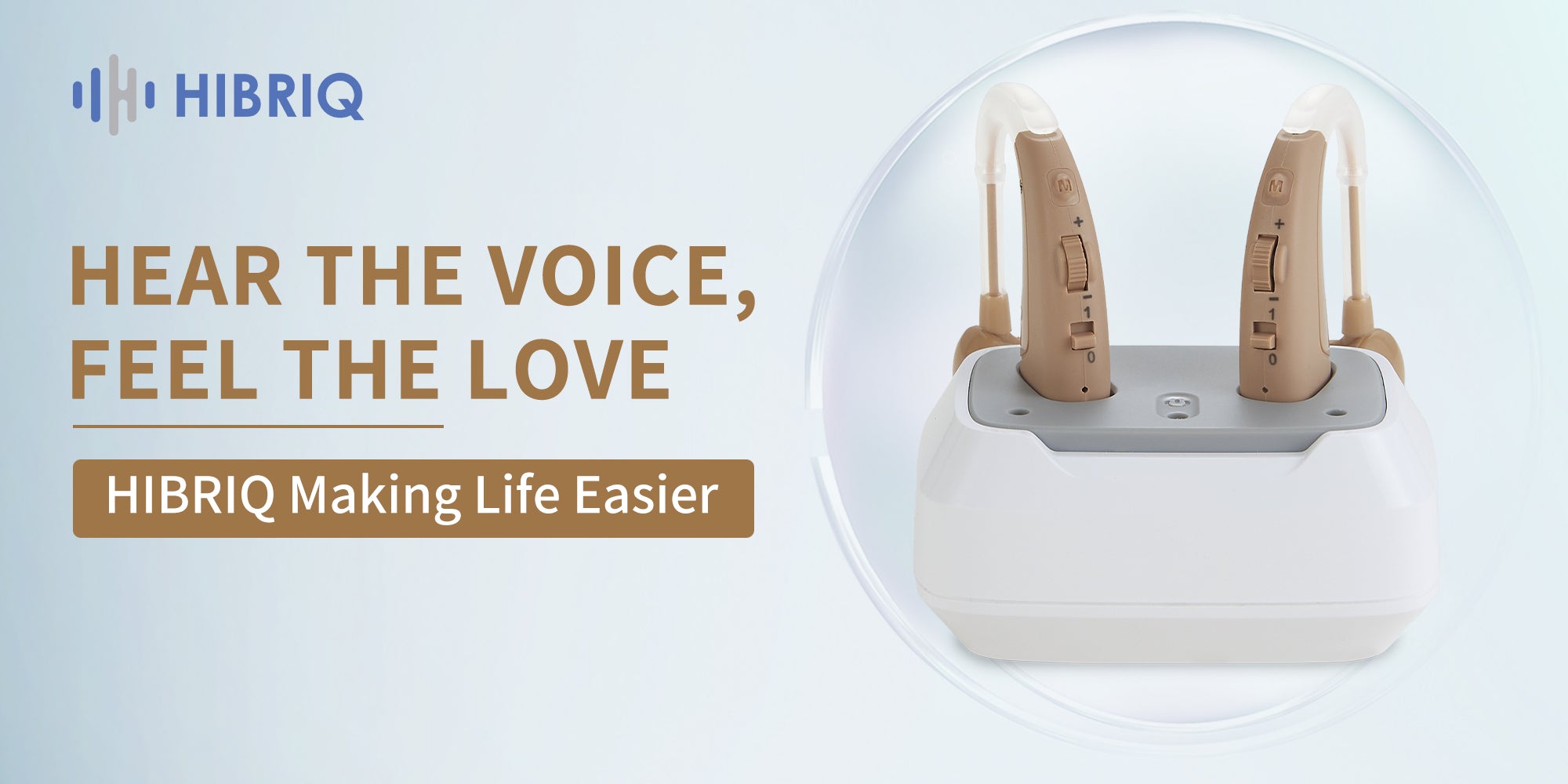 HIBRIQ VHP-1011 Rechargeable Hearing Aids, Control with Slide, Hearing Amplifiers for Adults with Adjustable Volume, Including a Portable Charging Dock, Beige.