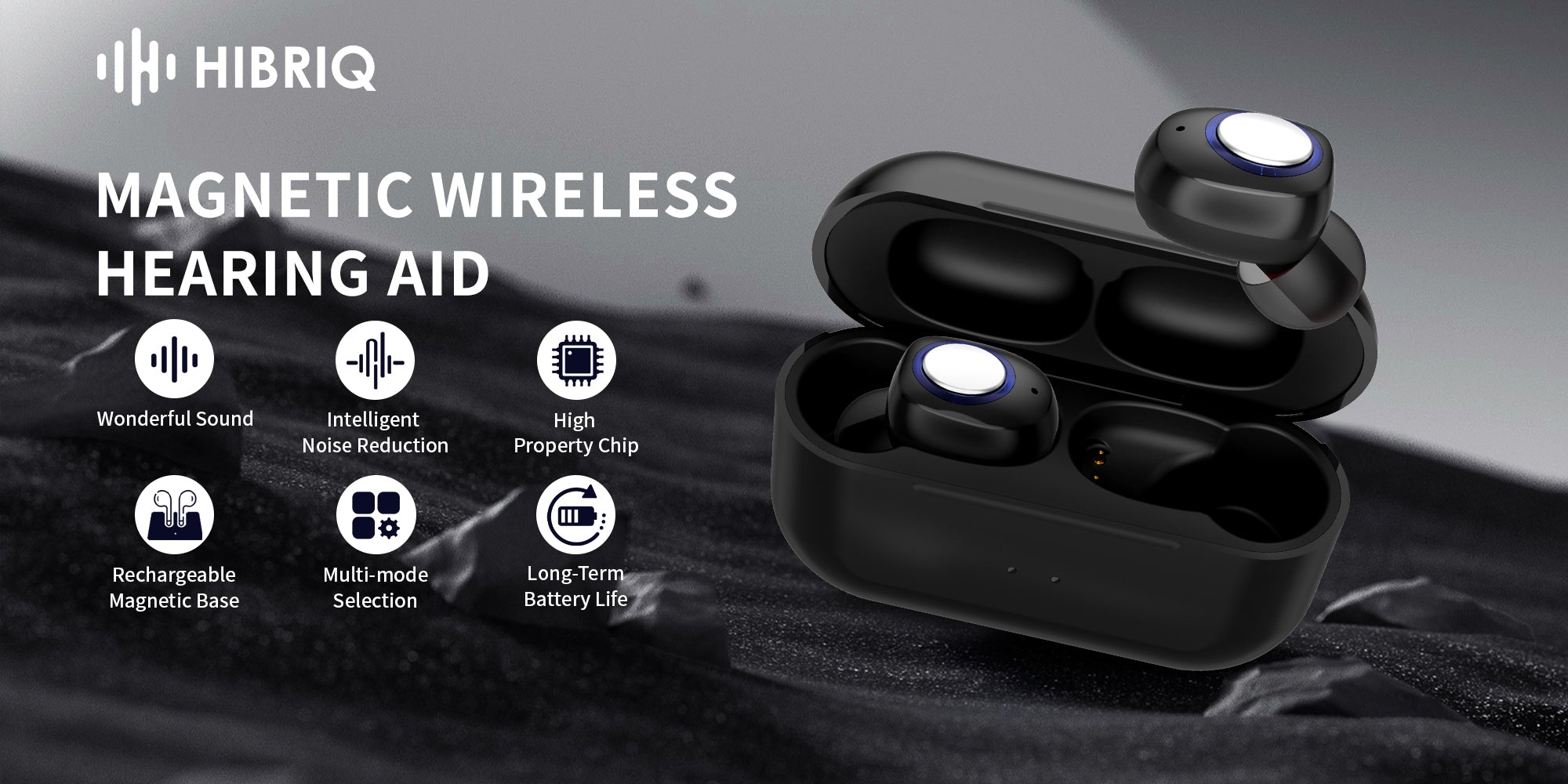 HIBRIQ VHP-1631 Hearing Aids, Rechargeable Hearing Amplifiers with Portable Charging Case, Comfortable Design, Binaural