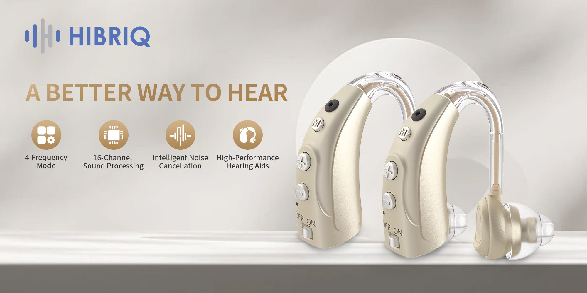 HIBRIQ VHP-1710 Binaural Hearing Aids, 16-Channel Rechargeable Sound Devices with Intelligent Noise Reduction, Adjustable 4 Modes & 8 Volume Levels, Beige