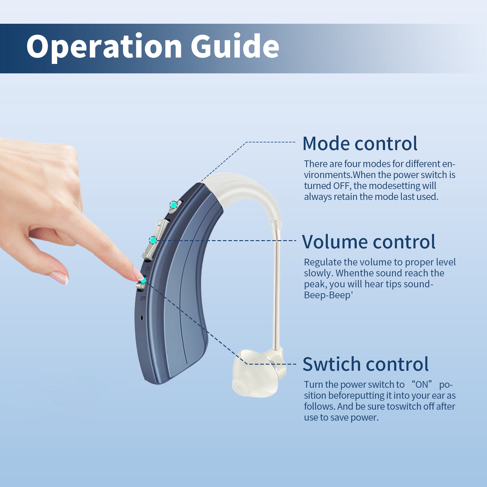 HIBRIQ VHP-1222 Advanced Hearing Aids for Adults, Rechargeable Hearing Amplifiers with Intelligent Noise Reduction, Adjustable Volume & Mode, Lightweight and Comfortable Design, Blue, Binaural